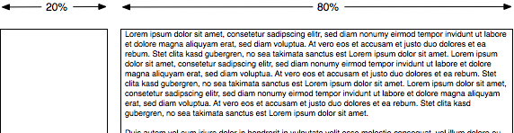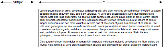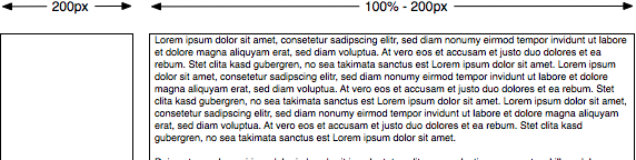 In this illustration, the content on the left displays best when given a 200px width. This would not be possible in a fluid layout, as it would require this region to have a percentage based width, like this: